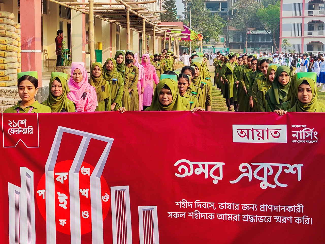 Ayat College of Nursing and Health Sciences family pays tribute to the great language martyrs of Ekushey on International Mother Language Day.